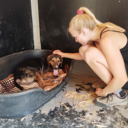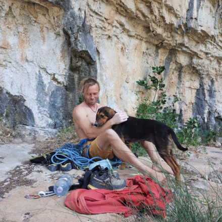und sich an Animal Soulmates für eine Rettung wandten. Hildi wurde bis zu ihrer Abholung von den Beiden über einige Tage versorgt und entwickelte sich zu einem richtigen "Crag-Dog" & begleitete die beiden oft zum Klettern am Fels. Hildi kam dann zum Shelter, wurde aufgepeppelt und hat mittlerweile sogar schon ein tolles "Für-Immer-Zuhause" gefunden. Doch die Erinnerung an sie und zu unserem Verein blieb bei den beiden Kletterbegeisterten tief im Herzen.