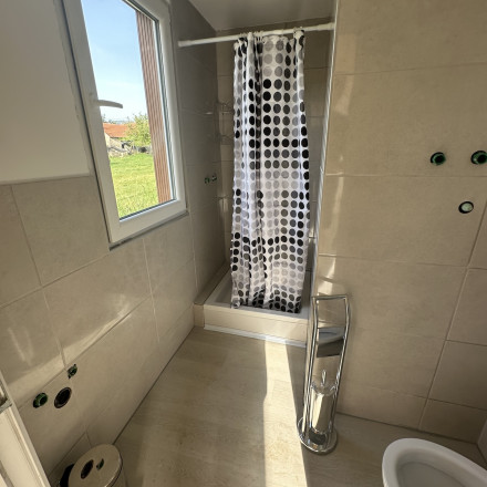 Mit zwei Autos geht es in die Stadt Nikšić, zuerst in den Baumarkt Kips. Hier suchen wir hauptsächliche Dinge für unser Bad, neben Fliesen auch eine Duschwanne und viele kleine Dinge. Danach folgen noch ein paar andere Läden, wo wir weiteres Material kaufen. Nachmittags baut Ludwig die Treppe zur Empore zusammen, Ralf, Mick und Bernd kümmern sich um die Fellnasen.