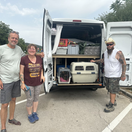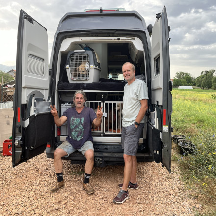 Früh morgens am Samstag um 6 Uhr starten die beiden Vorstände Bernd und Mick mit ihren Campern Richtung Montenegro. An den Tagen vor der großen Tour wurden die beiden Camper mit Spenden, Werkzeug, Futter und einiges mehr gefüllt. Mit an Bord für die lange Fahrt sind Ludwig, ein Ausbilder vom Berufsbildungswerk der Stiftung Liebenau, und zum ersten Mal auch Ralf, ein Mitglied aus unserem Verein.