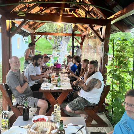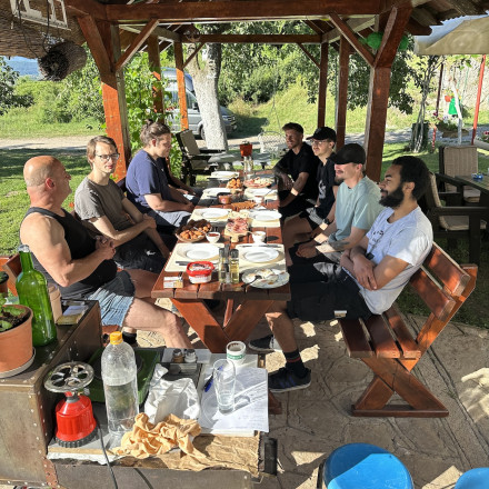 Als Belohnung für einen sehr guten ersten Arbeitstag mit einem tollen Fortschritt gibt es ein traditionelles gemeinsames Essen im Vidikovac.