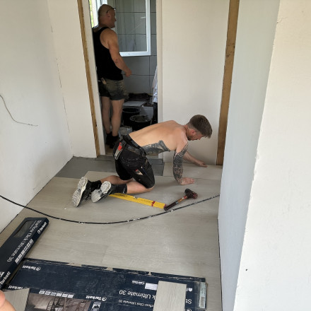 Tag 8, Samstag 22. Juni: Start Bodenverlegung mit Klick-Vinyl, alle Fliesen gesetzt