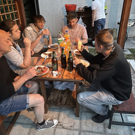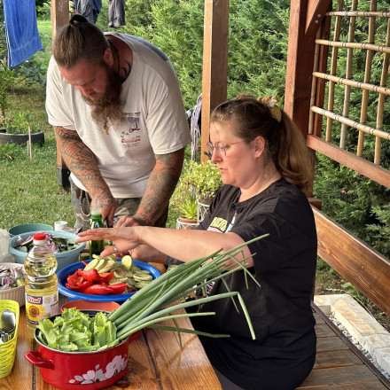 Am Abend folgt ein kulinarisches Highlight. Slavica, die Gastgeberin für unser Team vom Berufsbildungswerk Aich, hat uns zum Abendessen eingeladen. Es gibt ein traditionelles Essen mit Gemüsesuppe und gefüllten Blätterteigtaschen.