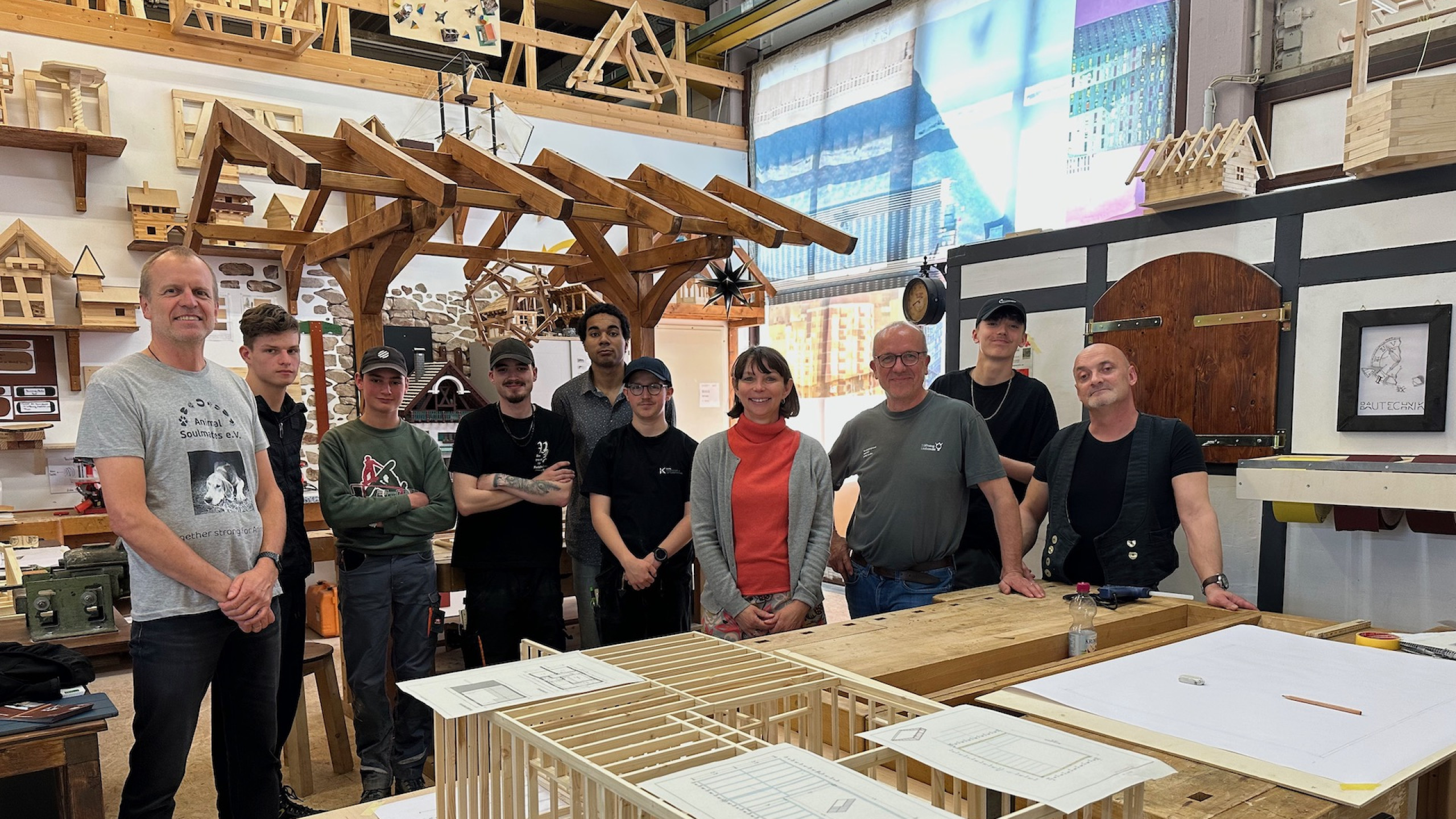 Auf der Suche nach Unterstützung für den Bau der Quarantänestation, speziell mit Arbeitsleistung im Zimmereihandwerk, kam Vorstand Bernd Röhl im Frühjahr mit Betriebsleiter Ludwig Speidler vom Berufsbildungswerk Adolf Aich (BBW) der Stiftung Liebenau ins Gespräch. Er zeigte ihm die Pläne und konnte ihn vom Projekt überzeugen. Nach interner Prüfung kam auch von der zuständigen Leitung des Berufsbildungswerks das ok und seit einigen Wochen geht es für Ludwig Speidler mit seinem Kollegen Bela Wiemeler in die Vorbereitung, unser Projekt wurde im Unterricht aufgenommen.