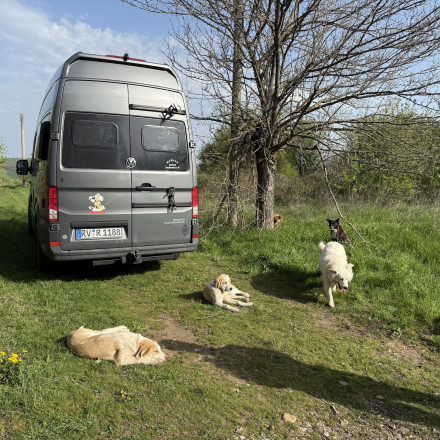 Hin und zurück – über 3.000 Kilometer im vollbeladenen Camper – führte uns unsere Reise zu Angela, einer außergewöhnlichen Frau mit einem großen Herz für Tiere. Angela, eine italienische Aussteigerin, lebt als Selbstversorgerin in einem abgelegenen Waldstück am Rand des fast verlassenen Dorfes Odorovtsi im Nordwesten Bulgariens. Im Winter hatte sie sich hilfesuchend an uns gewandt: Sie kümmert sich um rund 25 Katzen, zwei aufgefundene Welpen sowie zwei Streuner – ganz allein und mit begrenzten Mitteln.