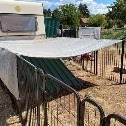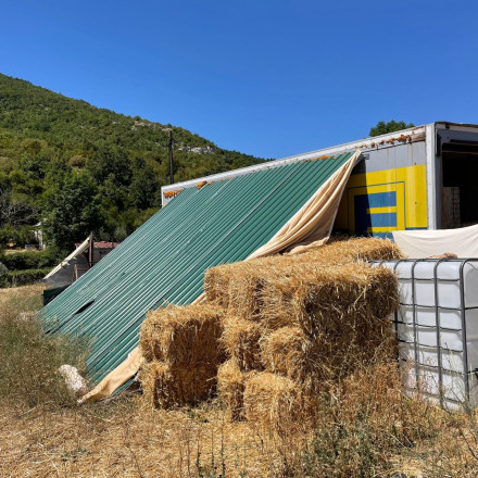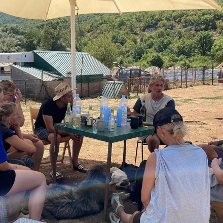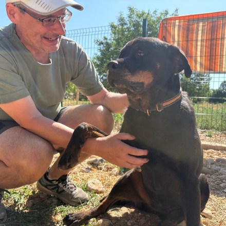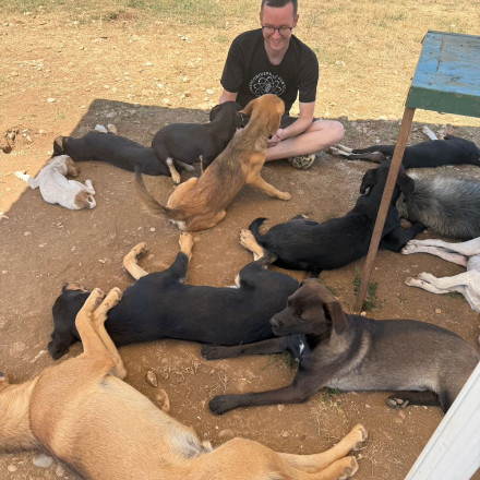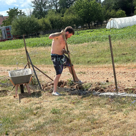 Zum Abschluss der Staffelfahrt übernahmen Mick und Ralf noch einmal viele wichtige Arbeiten. Gemeinsam stellten sie das Fundament für den neuen Zaun fertig, der bald für mehr Sicherheit im Shelter sorgen wird. Zusätzlich brachten sie einen neuen Sonnenschutz an, sammelten 100 Strohballen vom Feld und lagerten sie auf dem Platz ein. Ein weiteres wichtiges Projekt war das Entschärfen gefährlicher Metallkanten am Baustahlschutz der Bäume, um Verletzungen vorzubeugen. Neben den Bauprojekten kümmerten sich die beiden intensiv um die Hunde vor Ort: Nala, Betty und Puschel wurden täglich ausgeführt, was den drei Fellnasen eine willkommene Abwechslung bot. Auch Team 3 brachte am Ende vier Hunde mit nach Deutschland, die nun ein liebevolles Zuhause finden dürfen.