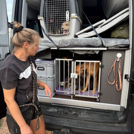 Ihr Schwerpunkt lag auf dem Ausbau der Außenküche. Sie erhielt einen neuen PVC-Boden und einen Wasseranschluss – Verbesserungen, die die tägliche Arbeit deutlich erleichtern werden. Besonders gefreut hat uns die Hilfe von Marc, einem Touristen im Wohnmobil, der einen Hund gefunden hatte und für einige Tage tatkräftig mithalf. Auch für Team 2 gab es ein Highlight: Fünf weitere Hunde konnten die Reise nach Deutschland antreten und sind nun auf dem Weg in ein neues Leben.