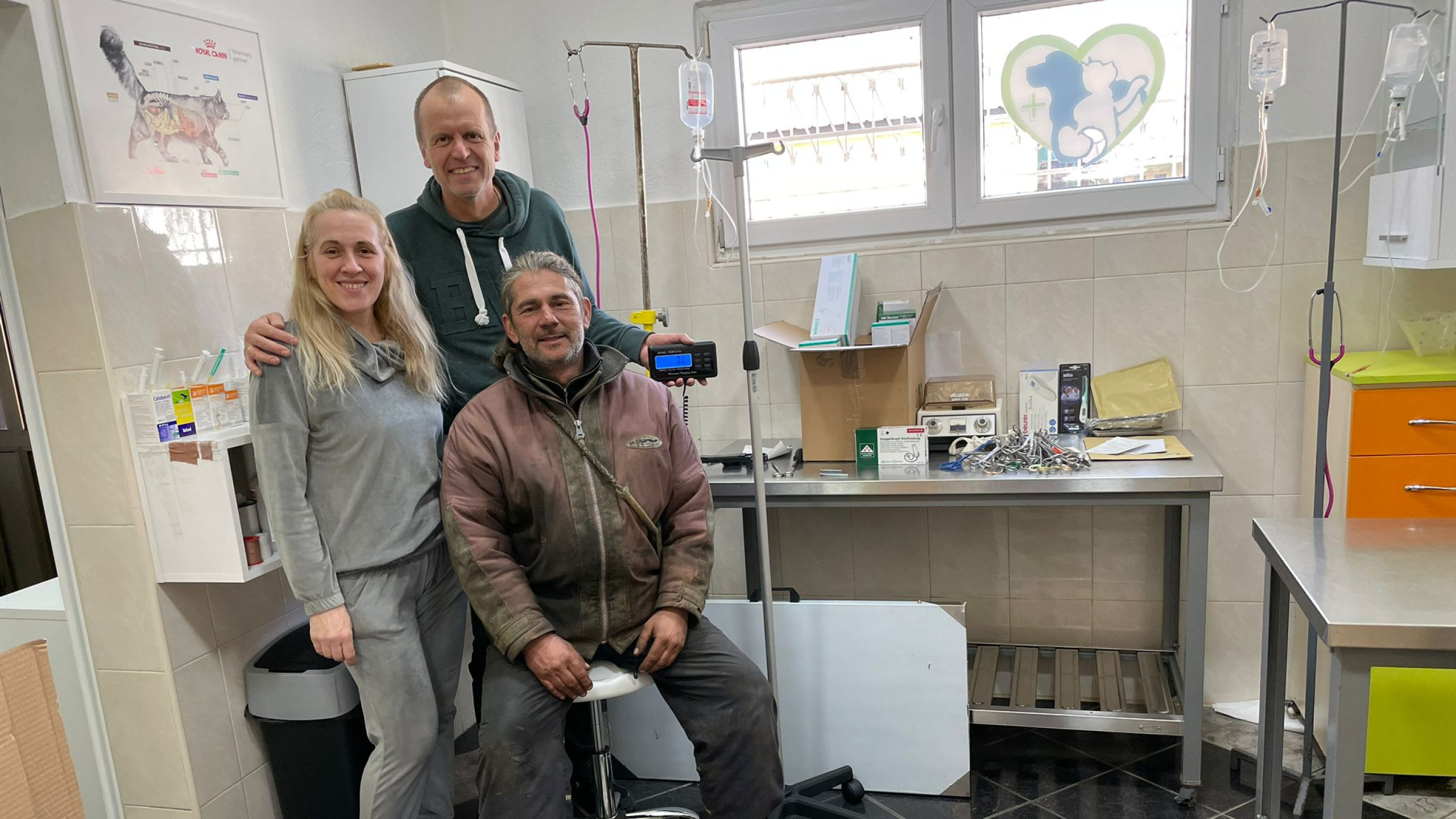Zuerst machten sich Marianne und Bernd am 8. Februar auf den Weg nach Montenegro. Einerseits gab es wieder sehr viel Futter für die hungrigen Mäuler bei Srdjan, anderseits auch viele Spenden, unter anderem einige Apparate und Zubehör für die Tierärztin Saska. Eine Spenderin besorgte neben einer Tierwaage, auch eine Zentrifuge, einen Stuhl, einen Infusionsständer und viel Ärztebesteck. Bei bitterkalten Temperaturen stand am ersten Tag neben der Begleitung und Hilfe für Srdjan auch noch die Übergabe der Geräte in der Tierklinik bei Saska in Niksic an. Am zweiten Tag besuchten wir einige Nachbarn von Srdjan. Die Gastfreundschaftlichkeit in Montenegro ist einzigartig, man kommt ohne den obligatorischen Schnaps und viel Essen nicht aus dem Haus.