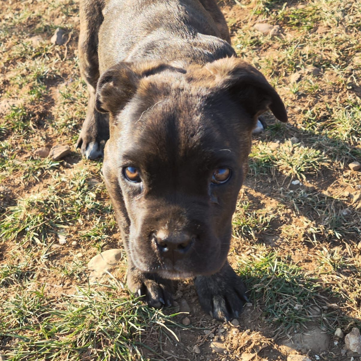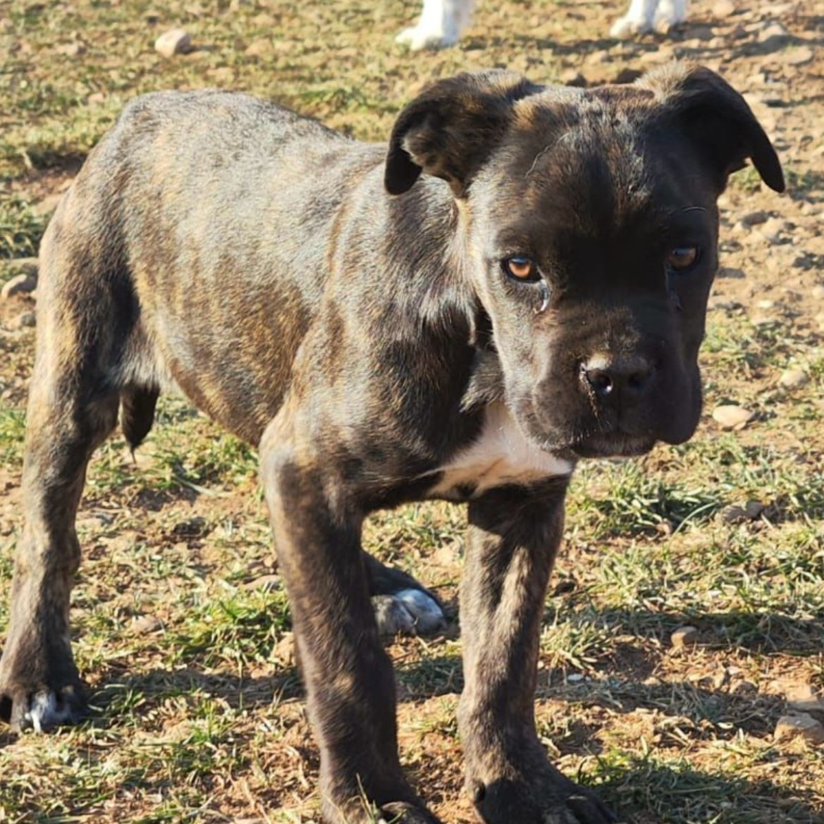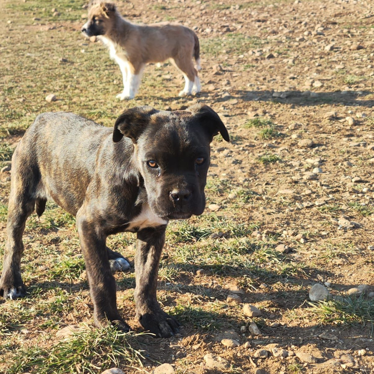 Boxermischling Bea wurde als kleiner Welpe unter einem Auto vor einem Supermarkt gefunden. Unser Tierschützer Srdjan hat die kleine Maus zu ihrer Sicherheit in sein großes Rudel aufgenommen. Bea hat sich sehr schnell im Rudel eingelebt. Sich versteht sich grundsätzlich mit ihren Artgenossen, beim Füttern kann sie auch mal zicken. Zu den Menschen sucht sie ständig Kontakt und würde am liebsten den ganzen Tag kuscheln.