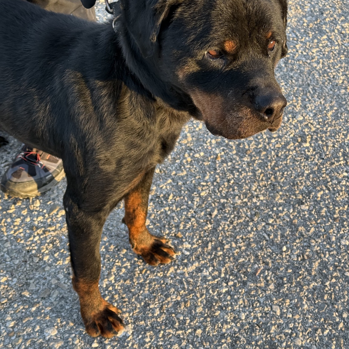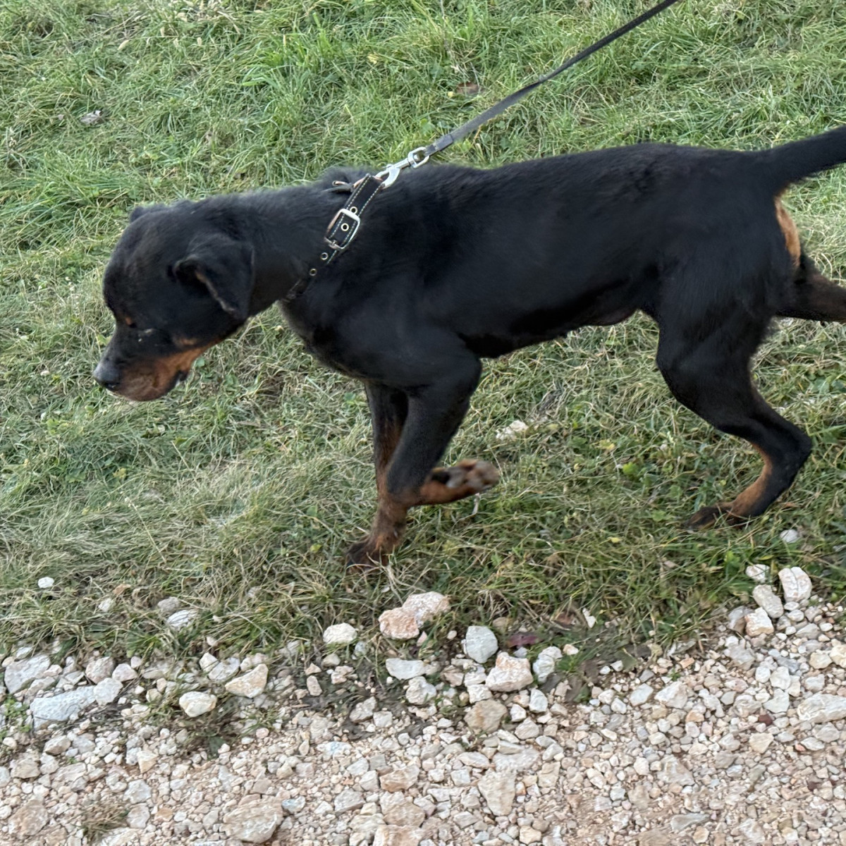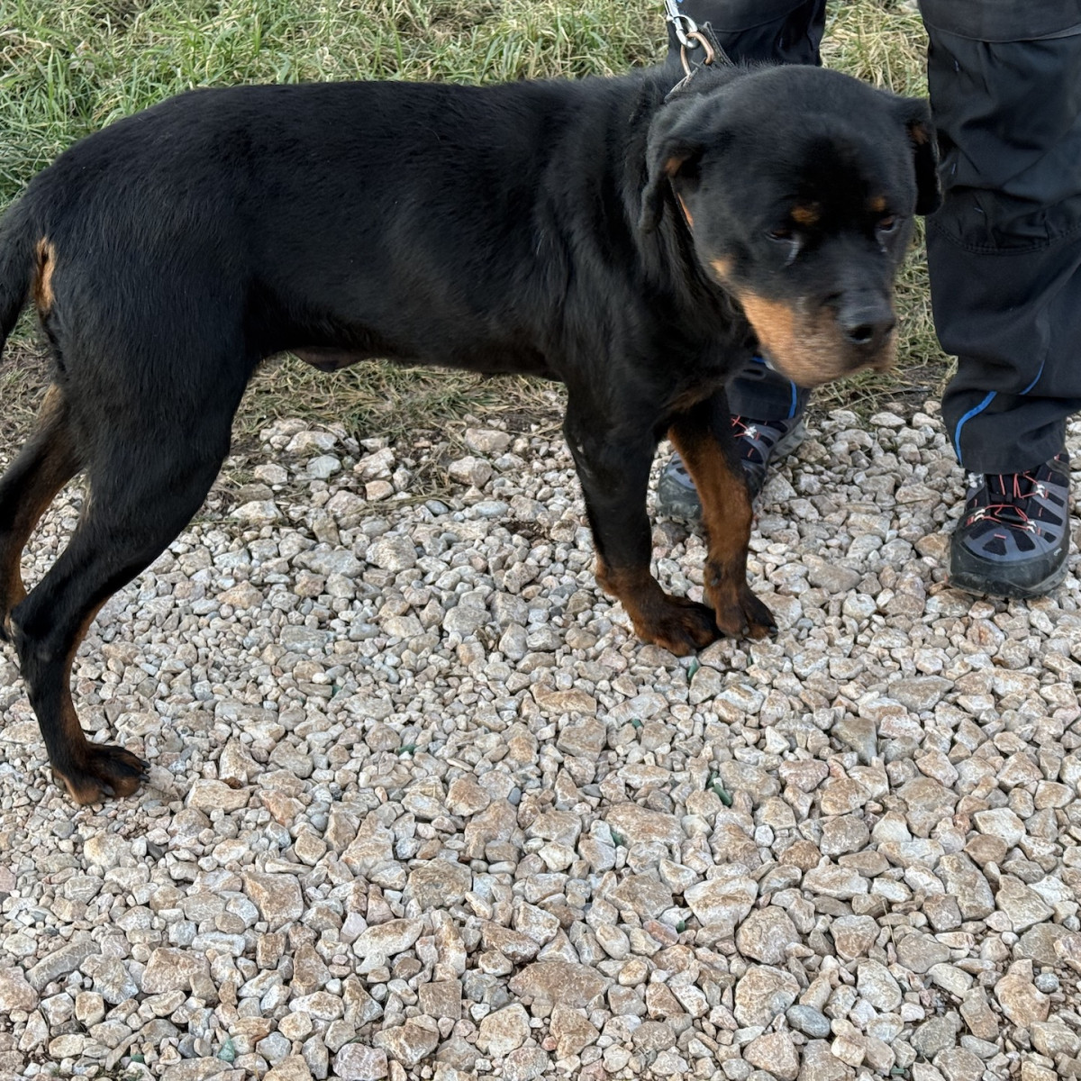 Die ca. 6-jährige Rottweilerhündin Betty wurde von einer Urlauberin entdeckt, als sie in einem erschreckenden Zustand war: offene Wunden und von Leishmaniose gezeichnet. Dank der schnellen Hilfe der Urlauberin und der hinzugezogenen Tierärztin wurde Betty medizinisch versorgt und ist nun seit dem 25. September bei Srdjan in der Quarantänestation.