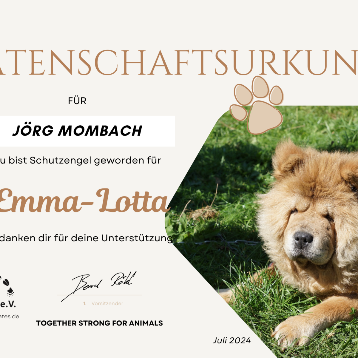 Das sind die Tierpaten, die mich auf meinem Weg unterstützen und mir durch ihr Engagement ein besseres Leben ermöglichen. Ihr macht einen echten Unterschied. Danke!