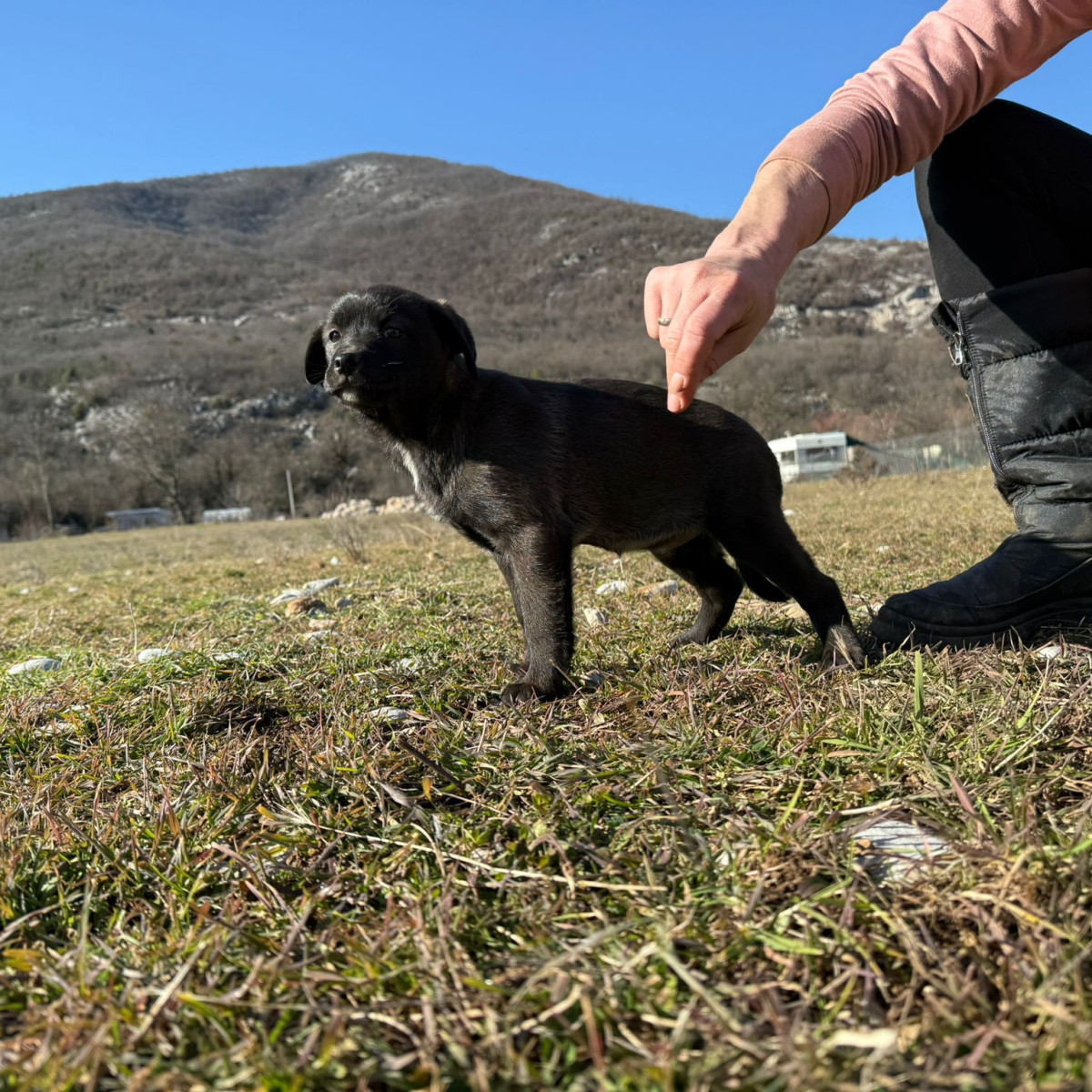 Hanni und ihre Familie wurden Anfang Januar im Norden Montenegros im Schnee gefunden. Ein junges Paar nahm sie mit und brachte sie zu Srdjan. Nach der Quarantänezeit lebt Hanni nun im großen Rudel. Sie darf im Sommer ausreisen.