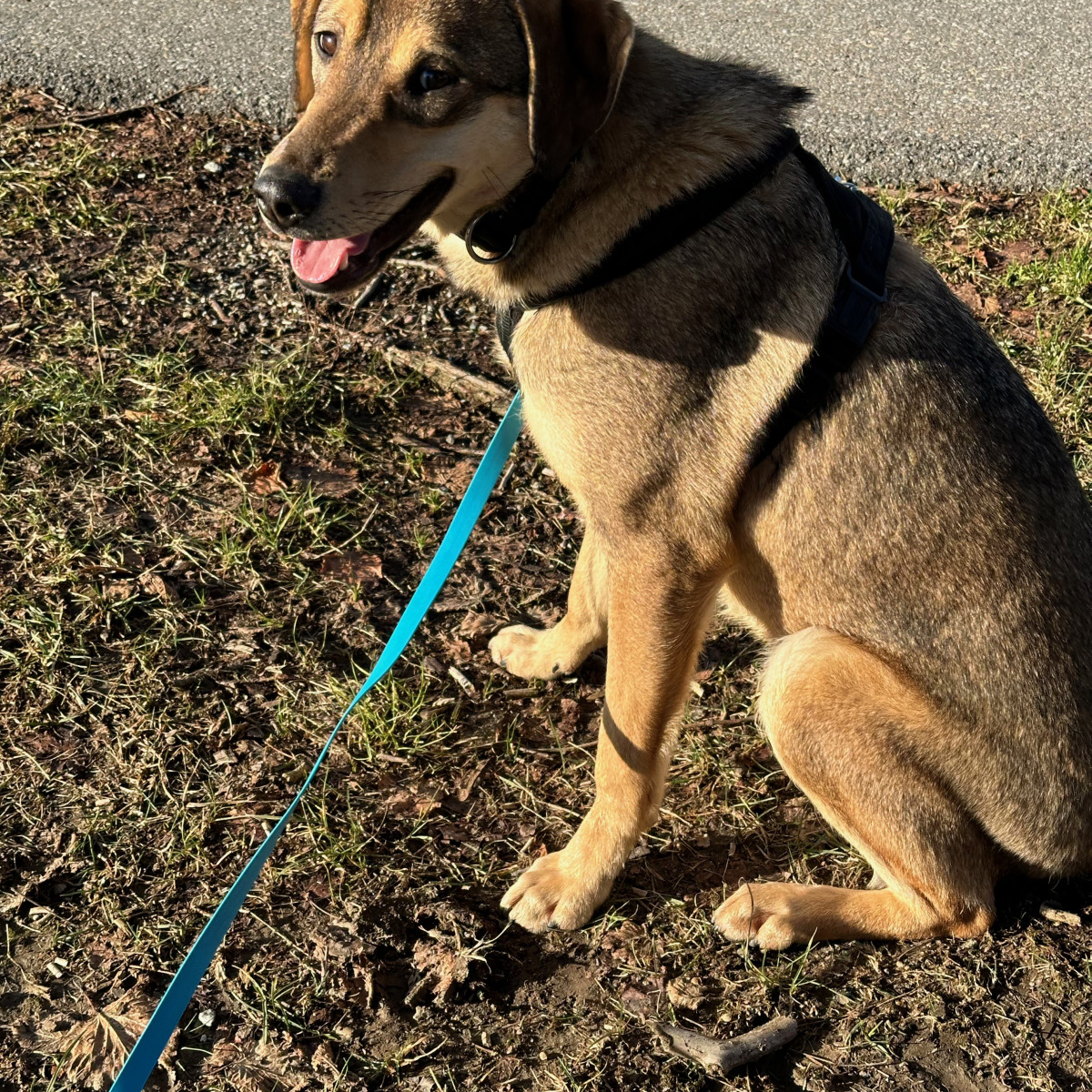 Lee ist ca. 10 Monate alt, 53 cm groß und 20 kg schwer.