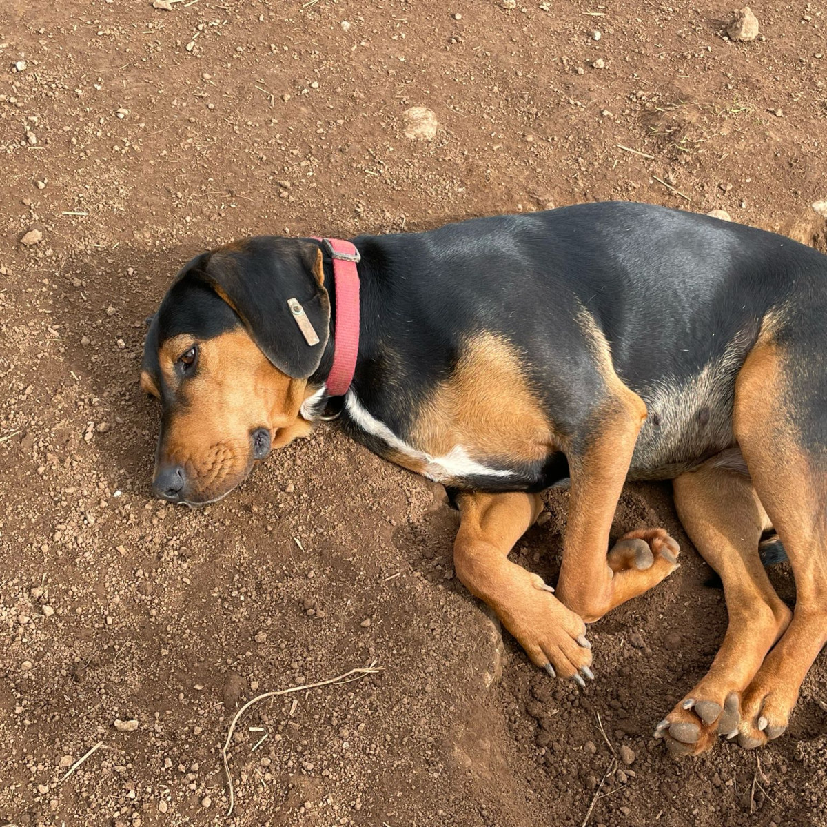 Lilly wurde im Mai 2023 von unserem Tierschützer Srdjan auf der Straße ziemlich abgemagert gefunden. Er hat sie bei sich im Rudel aufgenommen. Lilly hat sich gut erholt und schnell an Gewicht zugenommen. Sie hatte keinerlei Probleme, sich im Rudel zu integrieren. Mit ihren Artgenossen kommt sie super klar und spielt auch sehr gerne mit den Welpen.