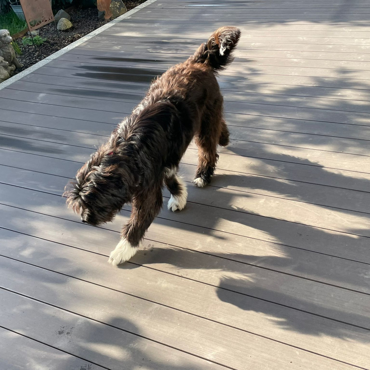 Das mittelgroße Mädel ist etwa 8 Monate alt und sucht nun ihrer Kuschelplatz.