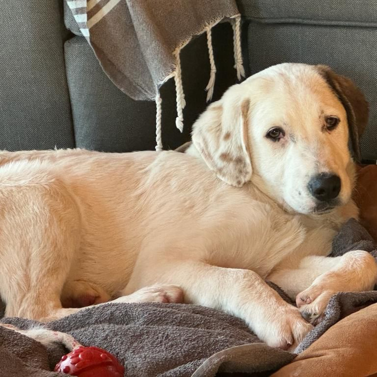 Lotar wird vermutlich eher eine etwas größerer Rüde, wir gehen von einer Schulterhöhe von ca. 60 cm aus, wenn er ausgewachsenen ist. Er ist sehr verschmust, menschenbezogen und altersbezogen sehr verspielt.
