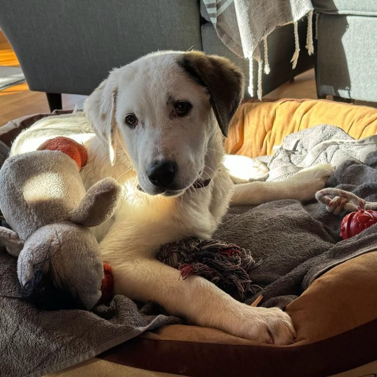 Am 8. Oktober 2023 erblickte Lotar mit seinen vier Geschwistern das Licht der Welt. Angela, eine Tierschützerin aus Odorovtsi/Bulgarien, nahm die Welpen mit Mama Stella auf und gab ihnen einen sicheren Schutz in den kalten Wintertagen. Nun werden die Welpen langsam flügge und erkunden fleißig ihre kleine Welt. Sie sind alle sehr neugierig und durften bei Angela auch schon ins Haus. Auch mit den anderen Tieren bei Angela, wie zum Beispiel Gänse, Hühner, Katzen haben sie Kontakt.