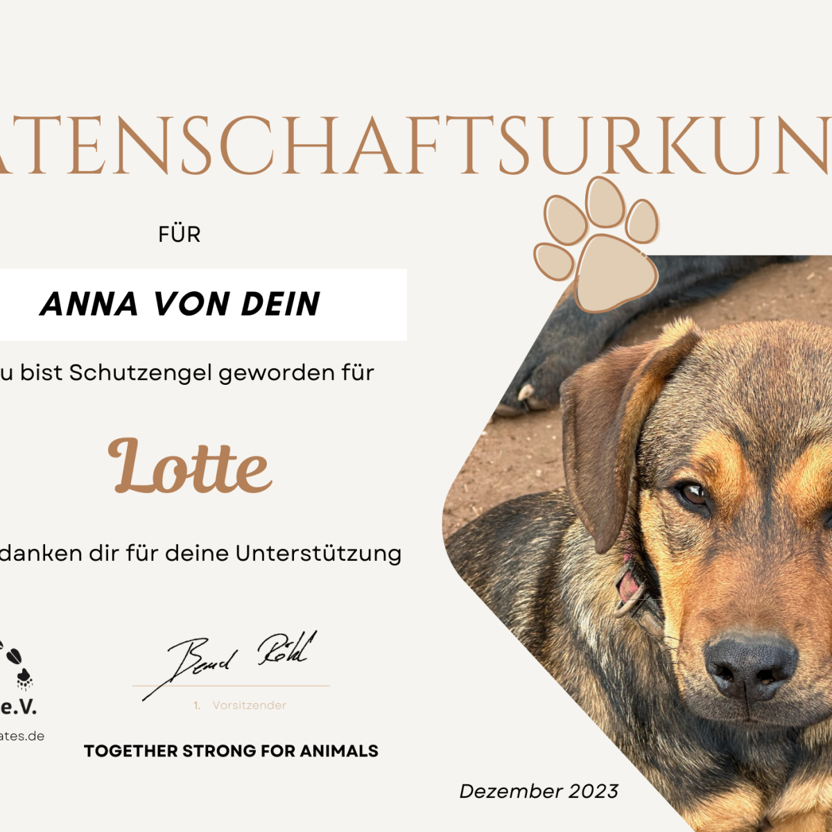 Wir aktualisieren ihr Profil, wenn wir neue Fotos haben und wenn klar wird, in welche Richtung Lotte sich entwickelt, wie groß sie wird usw.