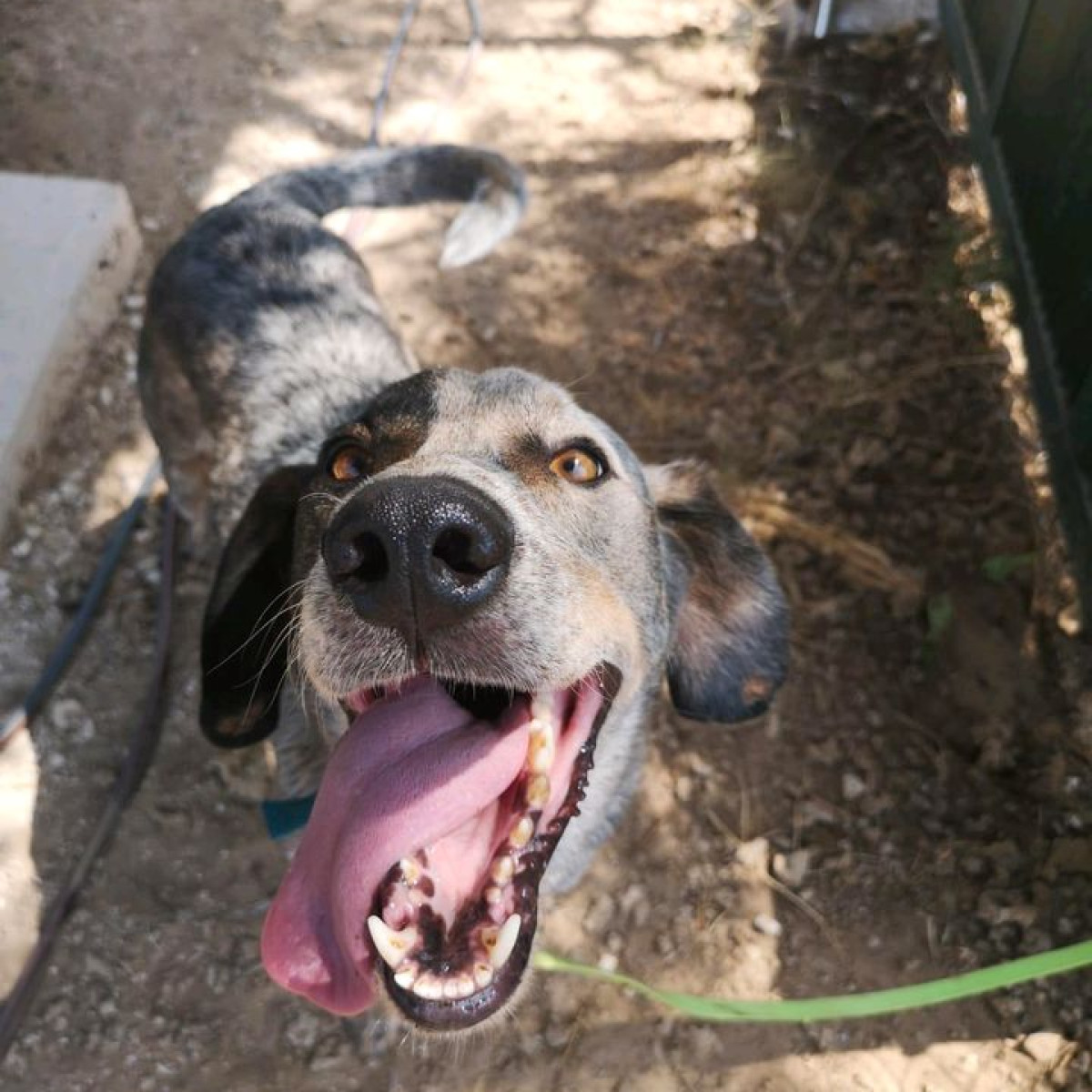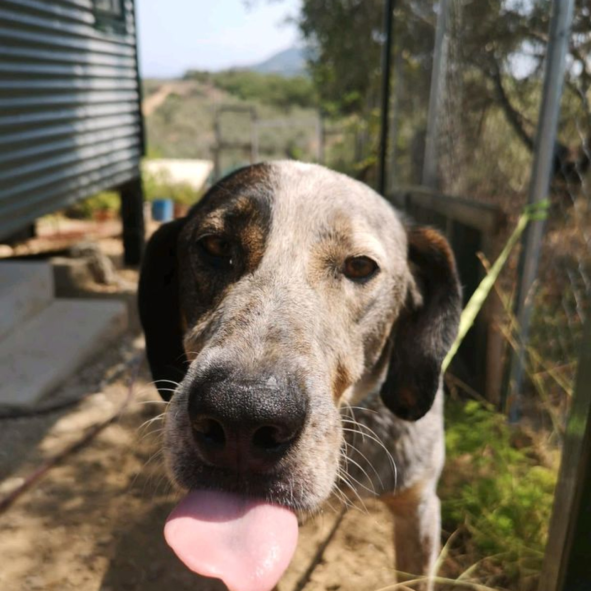 Mascot wurde von einer griechischen Tierschützerin gefunden und bei sich aufgenommen. Der etwa 4 Jährige Rüde hat eine Schulterhöhe von etwa 60cm und wiegt ca 25 kg.