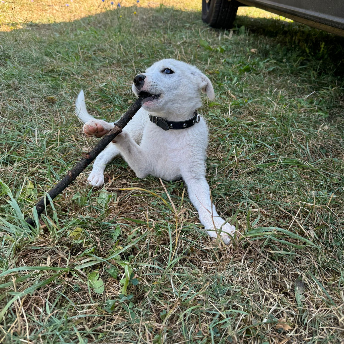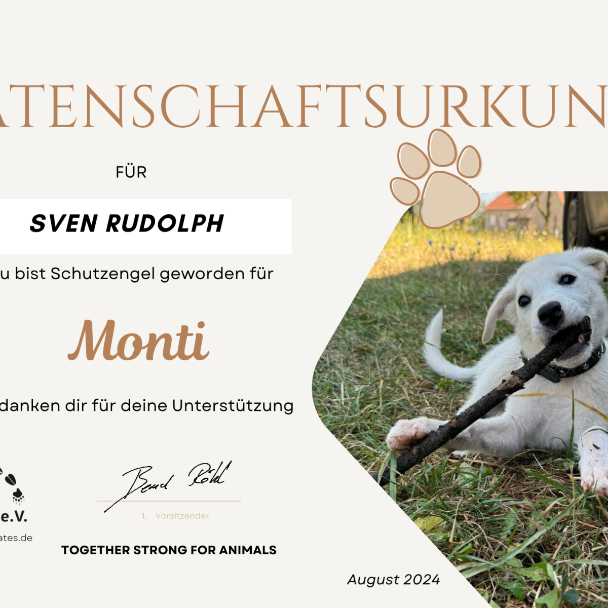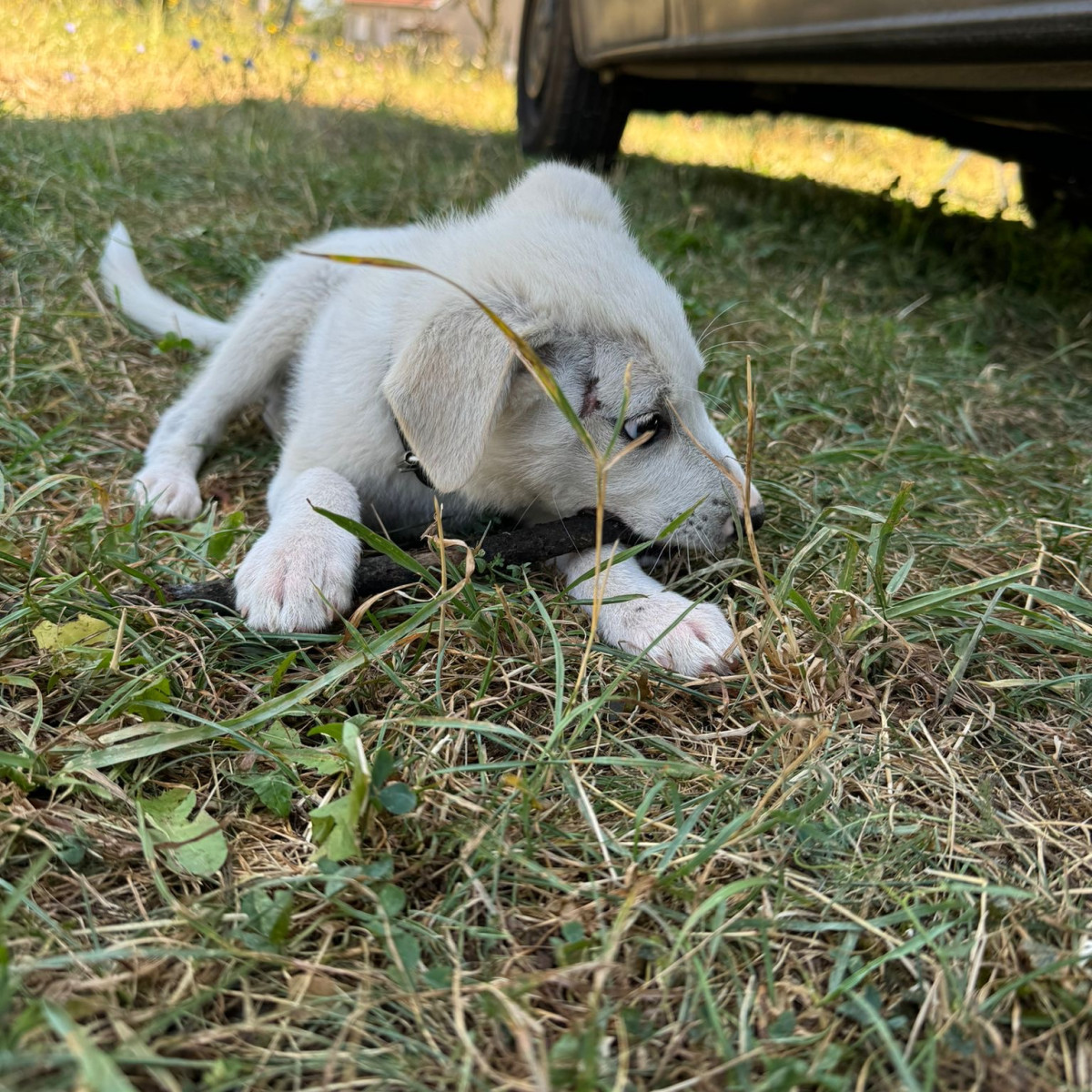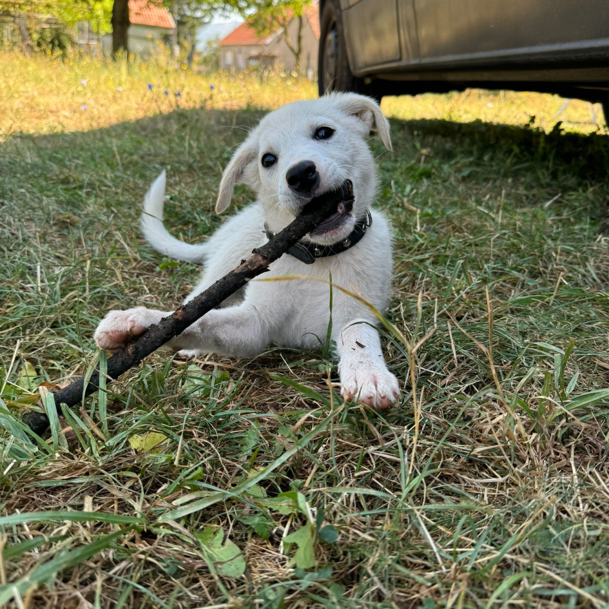 Der kleine Monti wurde im Alter von 8 Wochen auf einer Müllhalde an einer belebten Schnellstraße in Montenegro gefunden, weit weg vom nächsten Dorf. Er wurde dort von seinem Besitzer zurückgelassen. Er hatte das grosse Glück, dass er von zwei Touristen gefunden wurde, die ihn gleich in die Auffangstation in der Nähe von Niksic gebracht haben. Dort durfte er bleiben, bis er im Januar 2025 ausreisen durfte. Auf seiner Pflegestelle zeigte sich Monti zuerst zurückhaltend, da er das Leben bisher so nicht kannte. Bei Unsicherheit suchte er den engen Kontakt zu seinem Menschen. Monti ist jedoch schnell aufgetaut und hat sich an sein neues Leben und die neuen Strukturen gewöhnt.