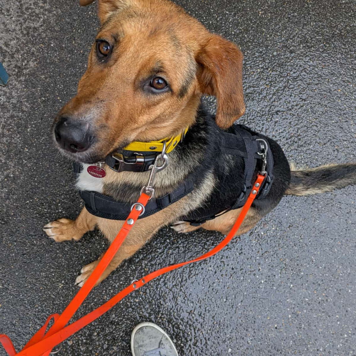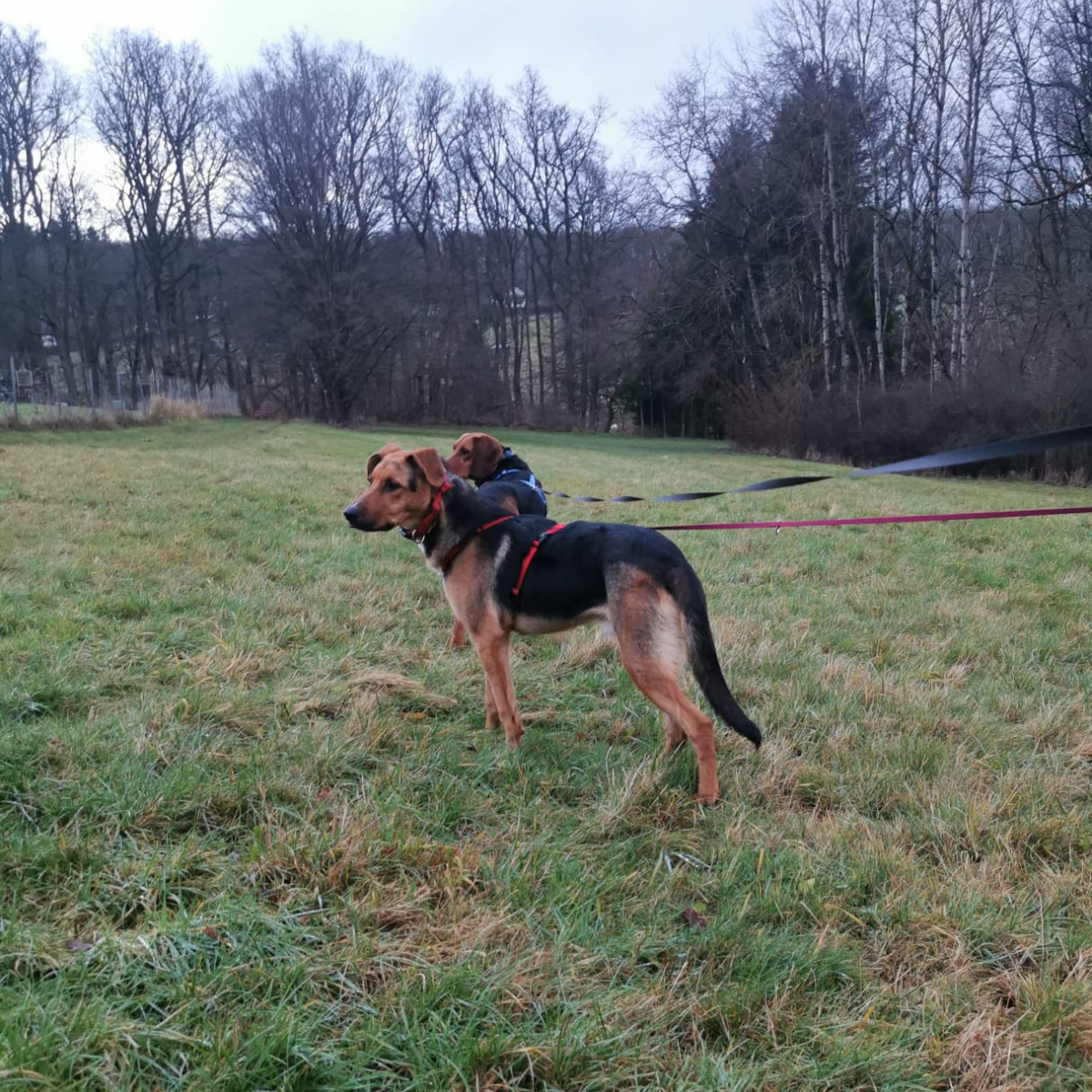 An der Leine läuft Pino bereits recht ordentlich, doch bei Hundebegegnungen ist er noch sehr aufgeregt. Das Training zeigt Fortschritte, und mit einem geduldigen Menschen an seiner Seite wird er schnell sicherer. Menschen begegnet er dagegen völlig entspannt – freundlich, offen, herzlich.