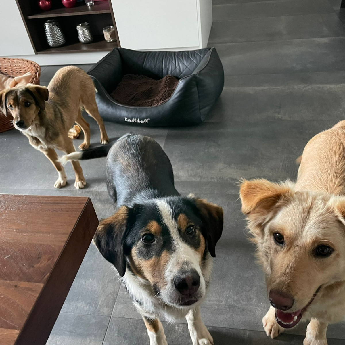 Schrödinger ist trotz seiner Vorgeschichte ein Traumhund. Er liebt die Menschen, ob groß oder klein, er verträgt sich super mit anderen Hunden, auch Katzen sind kein Problem. Er ist sehr verspielt und genießt im Augenblick das Leben auf einer Pflegestelle in der Nähe von Leutkirch im Allgäu.