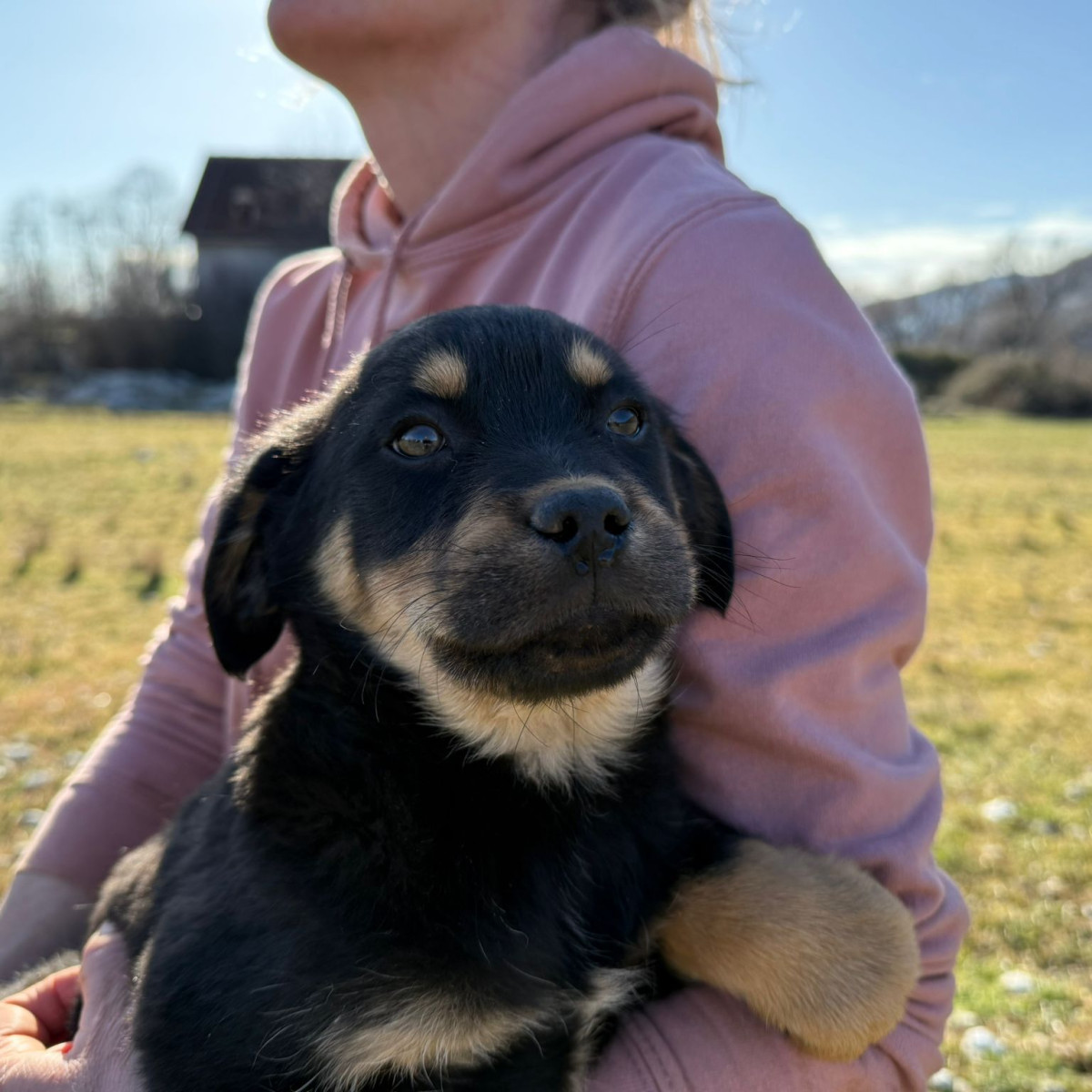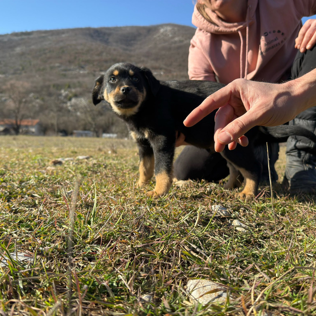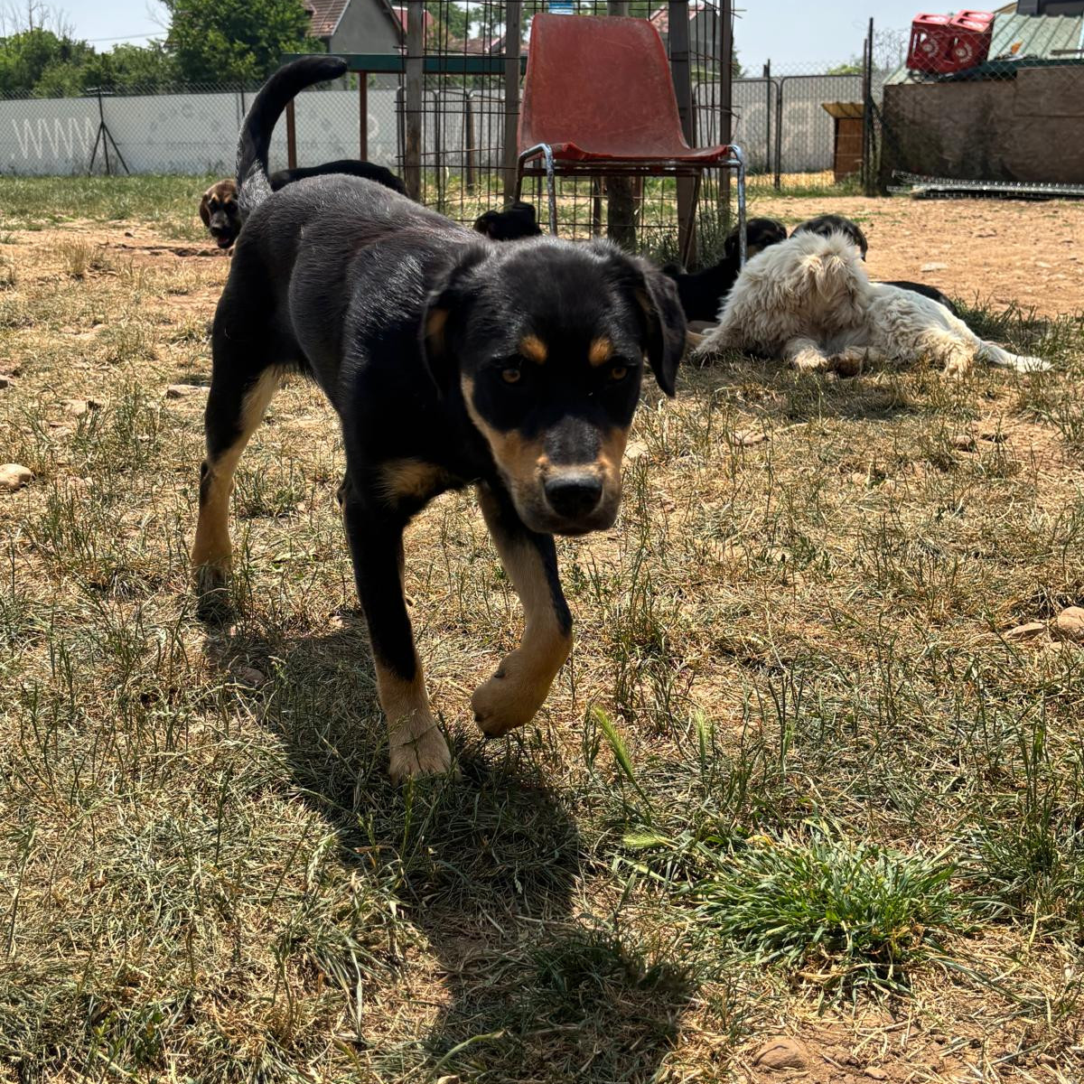 Theo wurde zusammen mit seiner Mama und seinen Geschwistern Anfang Januar im tiefen Schnee gefunden. Zum Glück entdeckte ein junges Paar die kleine Familie und brachte sie zu Srdjan, wo sie erst in der Quarantäne liebevoll versorgt wurden und Theo später ins große Rudel umziehen durfte.
