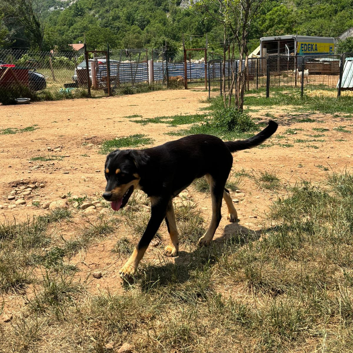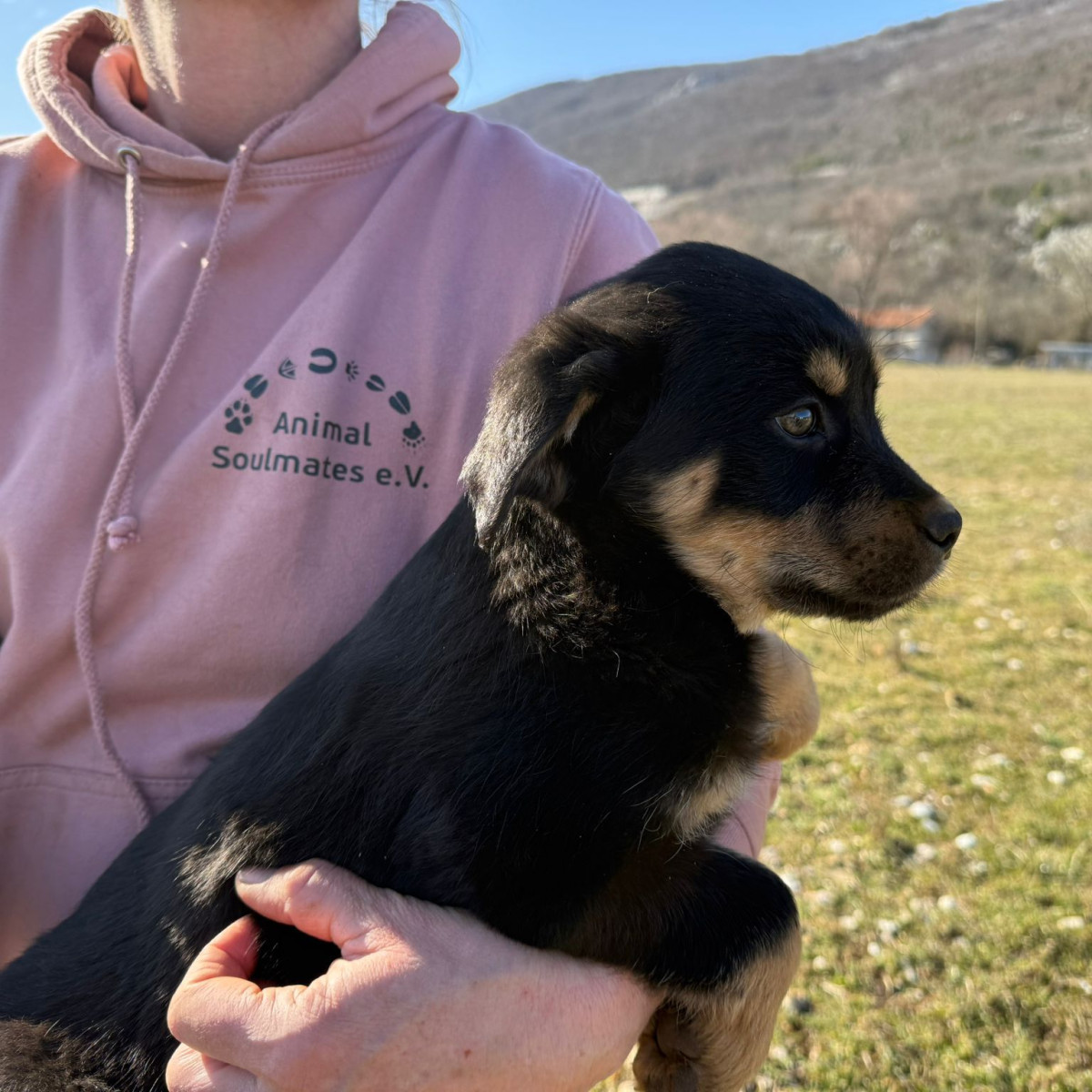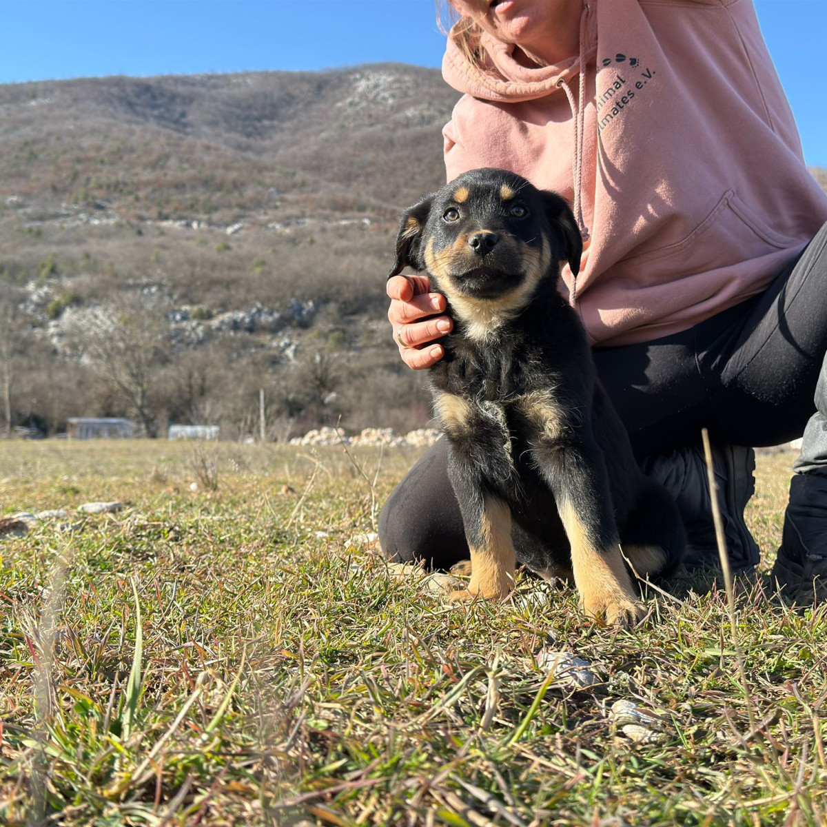 Theo wurde zusammen mit seiner Mama und seinen Geschwistern Anfang Januar im tiefen Schnee gefunden. Zum Glück entdeckte ein junges Paar die kleine Familie und brachte sie zu Srdjan, wo sie erst in der Quarantäne liebevoll versorgt wurden und Theo später ins große Rudel umziehen durfte.