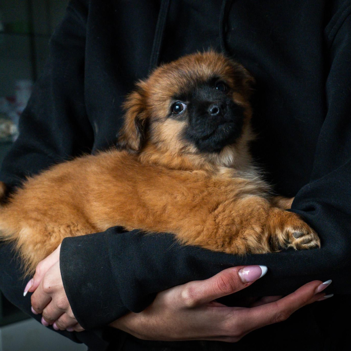Tick wird voraussichtlich 25–30 cm groß und könnte ein Mix mit Pekinese sein – also ein kleiner, knuffiger Begleiter für jede Lebenslage. 🐕