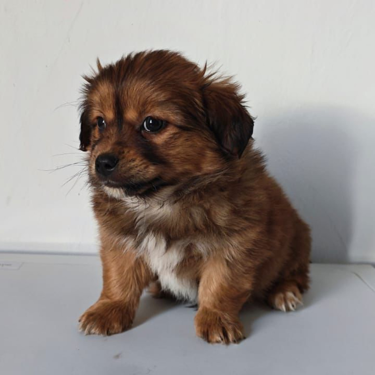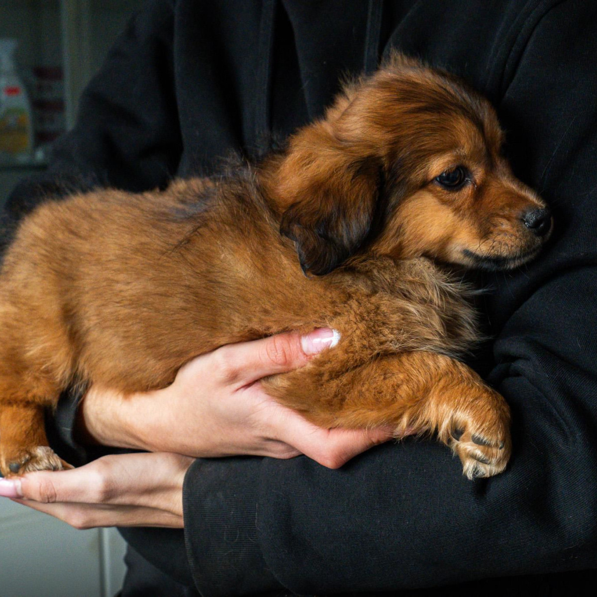 Mit einer geschätzten Endgröße von 25–30 cm wird er ein kleiner, handlicher Begleiter sein. Vielleicht steckt ja ein Pekinese in ihm.