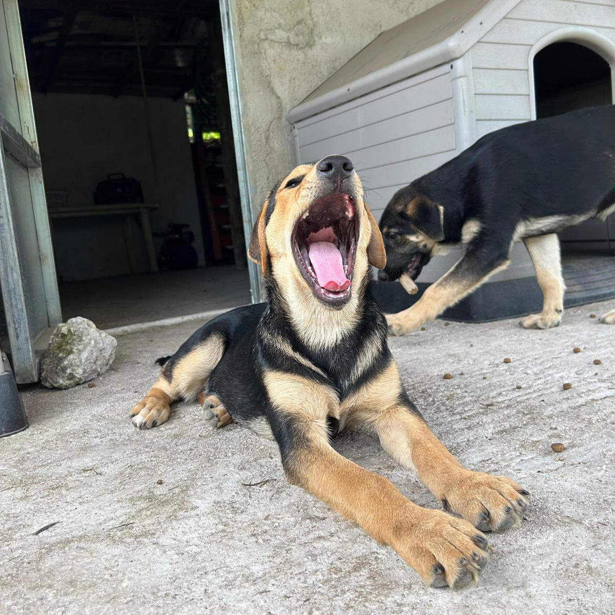 Zelda wurde zusammen mit ihren beiden Schwestern von einem tierlieben Griechischen aufgenommen. 5 von den 8 Geschwistern sowie die streunende Mama haben bereits ein Zuhause gefunden.Die Hundedame ist etwa 4 Monate alt und wird vermutlich mittelgroß bis groß. Es lässt sich vermuten, dass ein Schäferhund hier mit im Spiel war.Zeldaist Welpen typischsehr verspielt und allem neugierig und freundlich gegenüber aufgeschlossen. Sie lebt aktuell in einem kleinen Rudel und versteht sich mit allenArtgenossen.